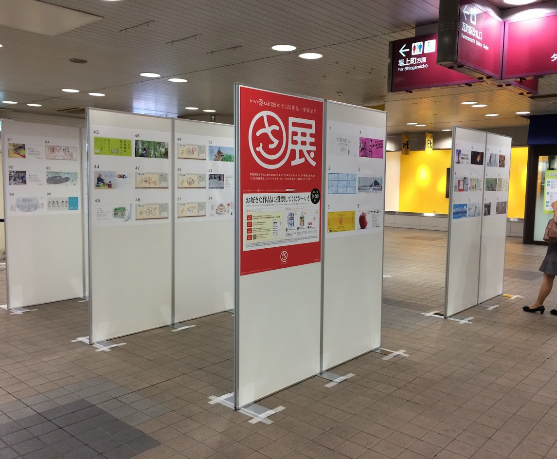展示会やブース、店舗用大判タペストリー印刷も製作しています。上下にバー加工やハトメ加工も可能です。